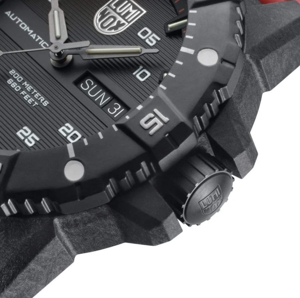 Zum ersten Mal präsentiert Luminox ein Automatikuhrwerk in einem CARBONOX+ Gehäuse. Ein mechanisches Uhrwerk hat immer etwas ganz Besonderes an sich: die Art und Weise, wie die einzelnen Teile zusammenwirken, um das Uhrwerk zum Leben zu erwecken, die Unruh, die sich dreht und die Stunden- und Minutenzeiger antreibt – es bereitet einfach eine unbeschreibliche Zufriedenheit, dieses zuverlässige und robuste Automatikwerk in Bewegung zu sehen.